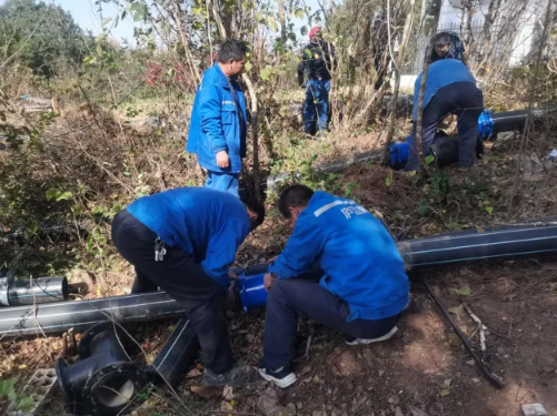 11月25日凌晨5时,因大风导致果园山一体化水厂取水浮船脱锚漂移,拉断DN400原水主管道,汤池镇、万山镇面临停水风险。县供水集团立即启动应急预案,调增郭河榆墩水厂、长岗泵站供水量,全力保障两镇供水;同时,组织30名工人、22台设备连续作业12小时,于当日下午5点恢复水厂生产,保障两镇正常供水。